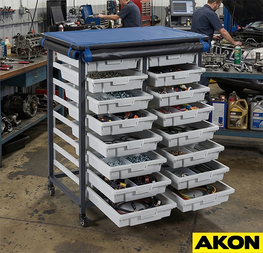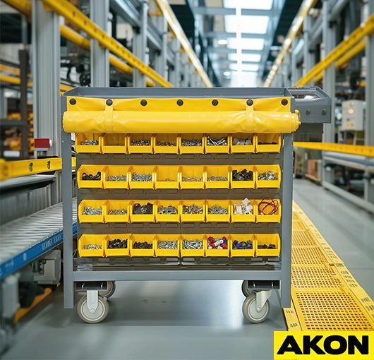 Bin carts organize small parts, fasteners, and components in individual compartments. Each bin holds different items that workers need quick access during assembly or repair work. Facilities like maintenance departments, assembly lines, and repair shops use bin carts to keep their materials organized and ready for use anytime. Since they have small parts in them, leaving this bin carts uncovered can expose the parts to dust and falling debris.