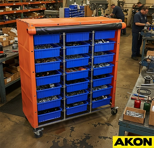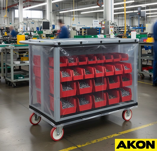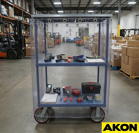 Warehouses and factories are busy places. Carts move tools, parts, and finished products from one end of the facility to the other every single day. The carts themselves are built to be strong, but the items inside are often fragile and needs extra attention. Without protection, valuable goods are exposed to dust, dirt and moisture. This exposure causes damage and costs businesses money. Industrial cart covers and curtains from AKON provide a simple solution to this common problem.