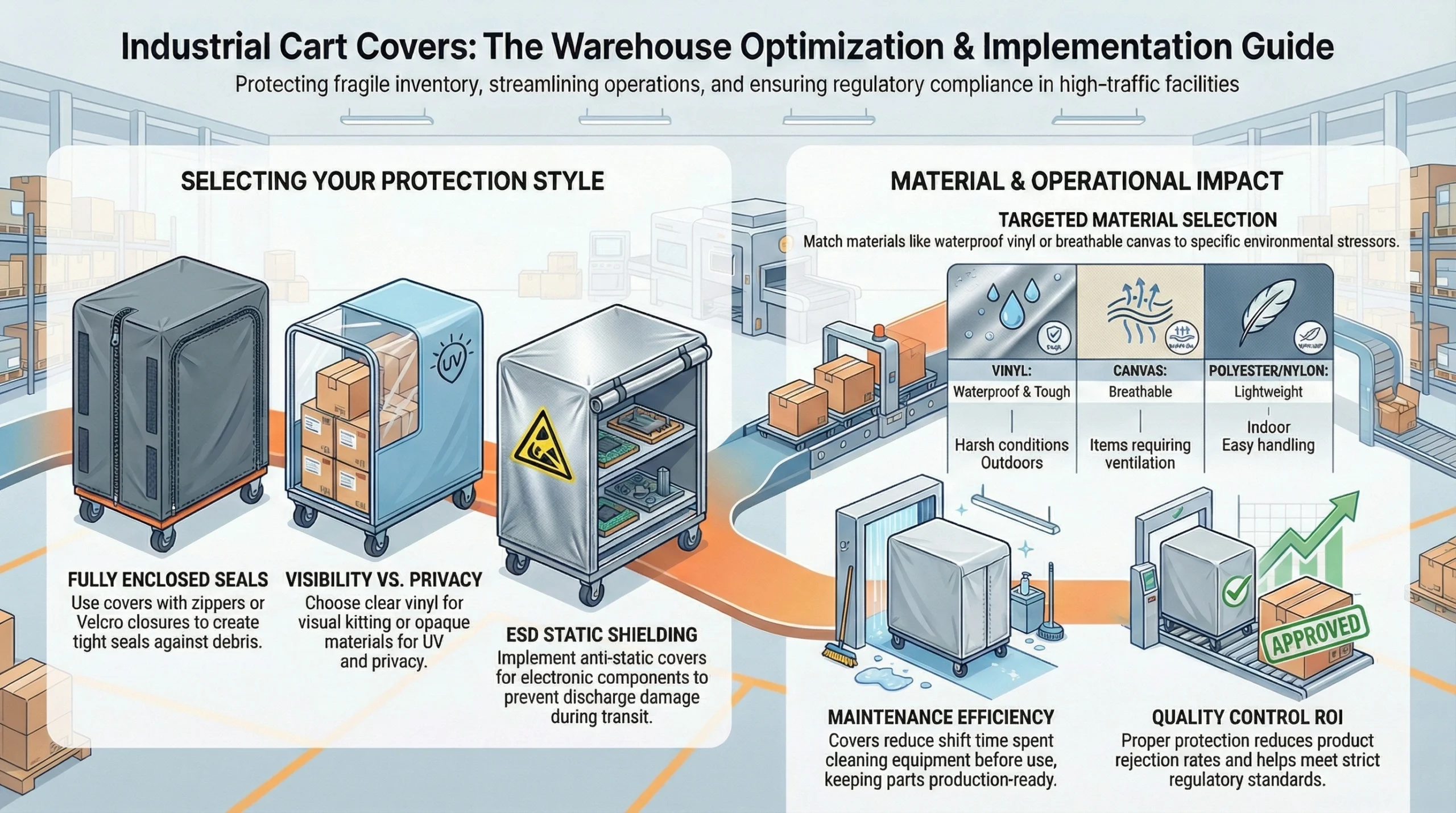 Picking the right industrial cart cover is important to keep your goods safe and make office work easier. You can learn more about how to choose the right covers for your building from the information below. It will also look at the different cover types and materials that work best in different settings. Find out how the right cart cover can help you meet cleaning requirements, keep your products safe, and cut down on the time you spend cleaning. The goal is to help you find the ideal cover type and material for your specific warehouse needs.